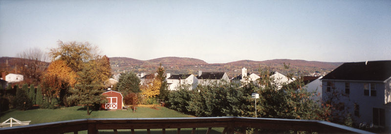 | Looking out my back window at the Catoctin Mountains in the distance. This is before the large field in the middle of the picture was bulldozed and built-over with houses. |
