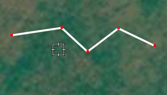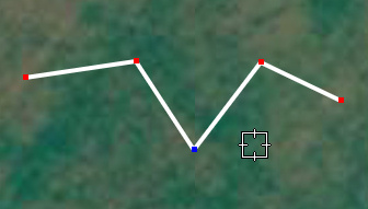This is what the path looks like when you open the properties dialog box to edit the path (the dialog box is not visible in this picture). All the points that make up the path light up and the cursor changes to a box with crosshairs. If the cursor is not on any point, the points are all red.